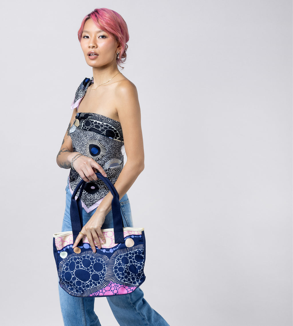 An ode to origin stories, the In the Beginning Tote features a POEMET signature design known for its flowing, organic lines and symbolic depth. Light yet roomy, it’s a statement piece for those who carry meaning with them—wherever they go.